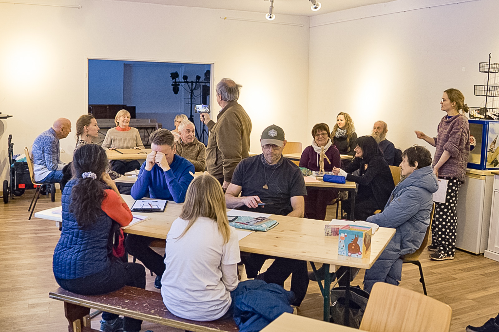 Georgia und ich waren gespannt, wie viele unserer Einladung folgen würden. Gegen 16 Uhr öffnete sich die Tür – und plötzlich strömten die Teilnehmerinnen und Teilnehmer herein. Schnell wurde klar: Die vorbereiteten Tische reichten nicht aus. Was für eine schöne Überraschung! Die Freude war groß, und wir starteten direkt.