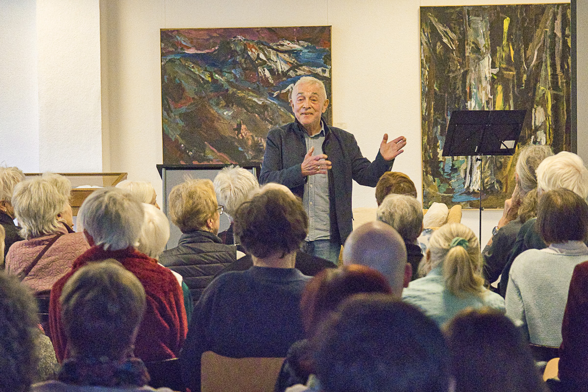 Dr. Reinhardt Gutsche tritt nach vorn. Seine Laudatio ist keine bloße Würdigung – sie ist ein gedanklicher Weg durch das Werk von Jürgen Schnelle. Er spricht von den 1960er Jahren, von Aufbruch und Reibung, von künstlerischen Entscheidungen, die nicht immer selbstverständlich waren.