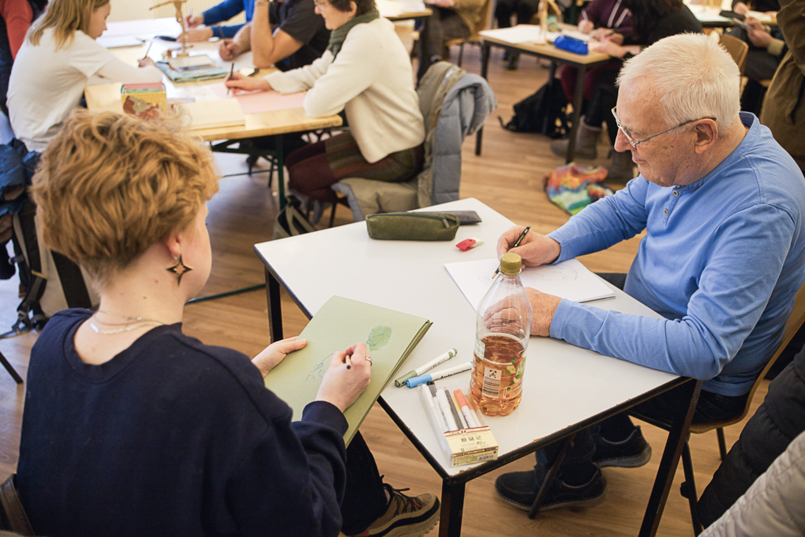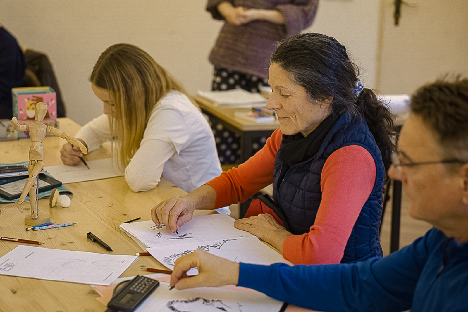 Der Workshop stand ganz im Zeichen des Ausprobierens. Viele Übungen erinnerten bewusst an Kunstschul-Situationen: weg vom Perfektionsanspruch, hin zum unmittelbaren Sehen und Zeichnen.